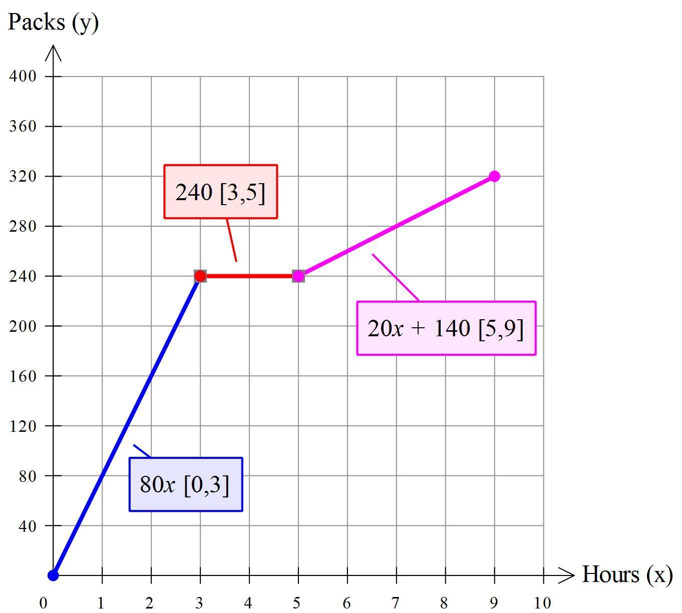 They stop packaging for the next 2 hours in order to carry out a training session. ⇒ y₂ = 240 , x ∈ [3,5]