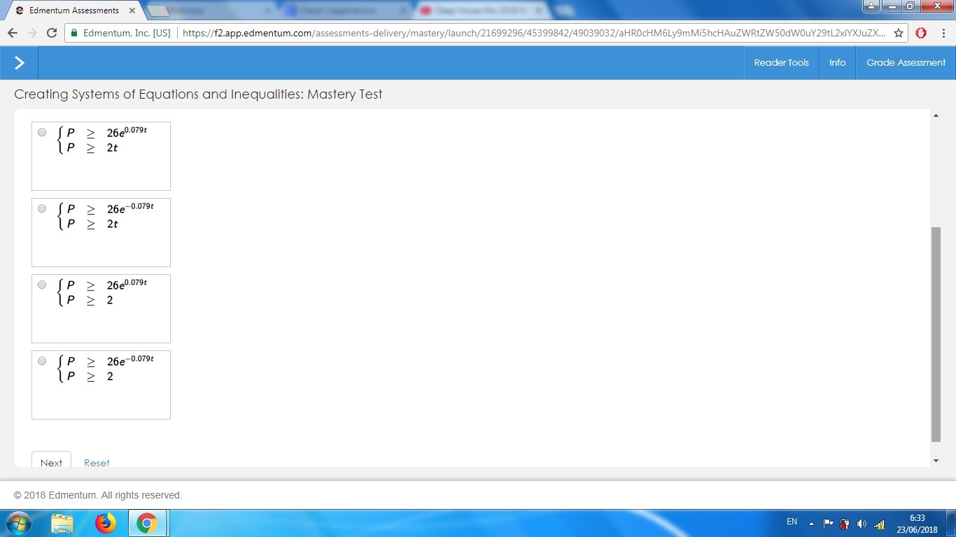 Therefore, this part of the inequality will be: P\geq26e^{-0.079t}, where the minus sign before the 0.079 denotes the decay.