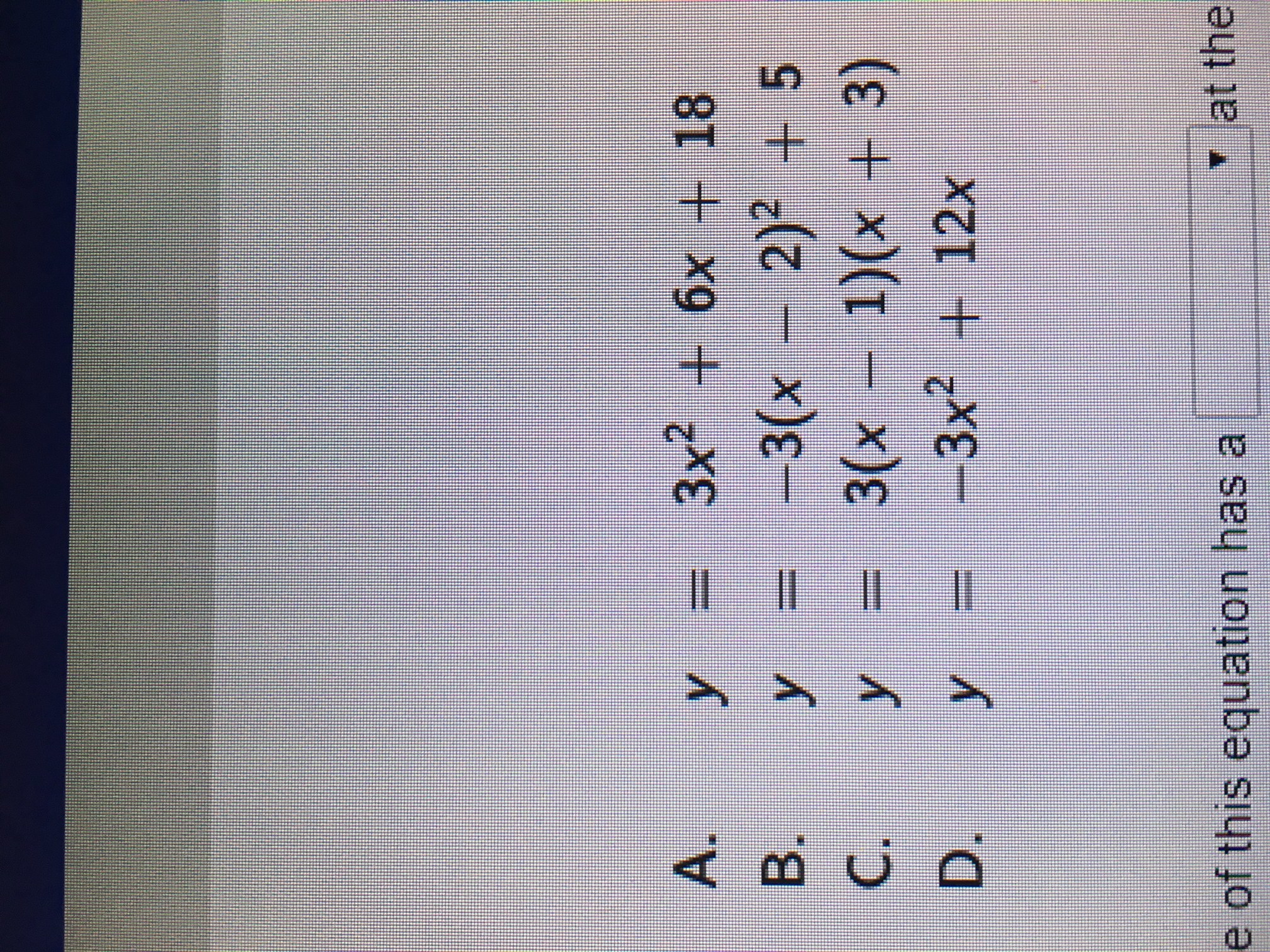 Option B contain the expression where you can see perfect square. Thus, equation \bf{y=-(x-2)^2+5} (choice B) reveals its extreme value without needing to be altered.