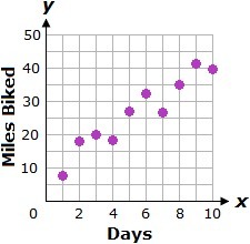 Maggie is training for a bicycle trip across her home state. She recorded the approximate number of miles biked for ten days of