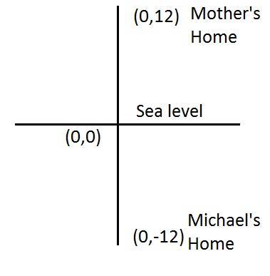 That is, with respect to sea level Michael's home is towards north direction and his mother's home is towards south direction.