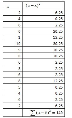 \therefore Variance = \frac{140}{16}=8.75
