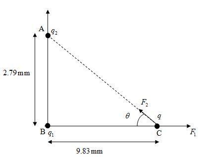 The net force on the proton placed at a point on x-axis is the resultant of the forces applied by the charge placed at origin and charge placed at the y-axis.