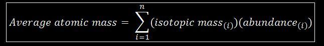 \boxed{ \ Average \ atomic \ mass = \sum_{i = 1}^{n} (isotopic \ mass_{(i)})(abundance_{(i)}) \ }