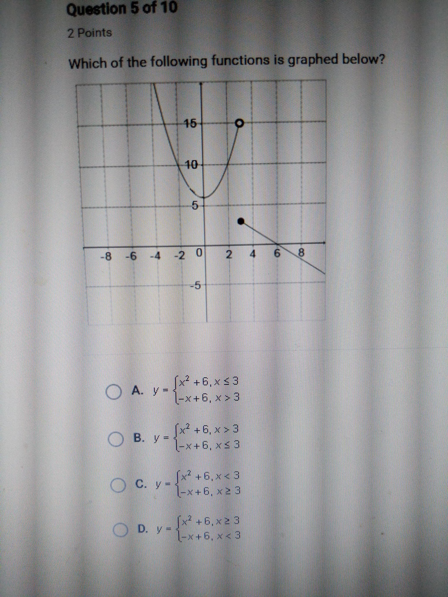Which of the following functions is graphed below?