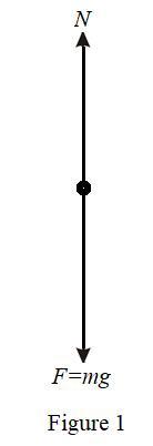 Identify, sketch, external, forces, acting, chair, represented, point particle, mass, m, draw, tails, centered, black, dot, middle, certain, correct, orientation, upward, normal, reaction force, downward, force due to gravity, gravity force.