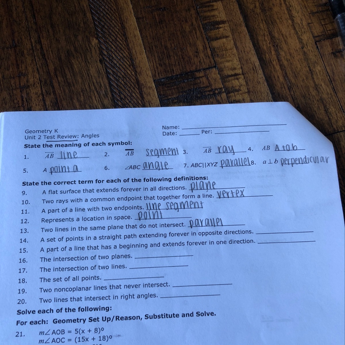 20. = Perpendicular Lines