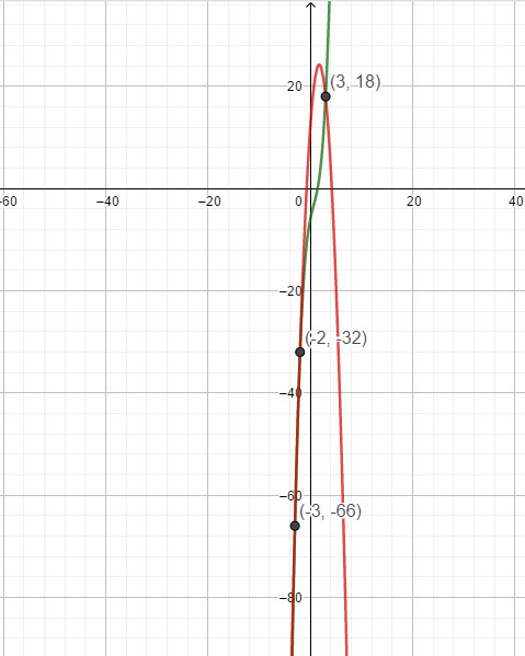 Carlos graphed the system of equations that can be used to solve x^3 - 2x^2 + 5x - 6 = -4x^2 + 14x + 12