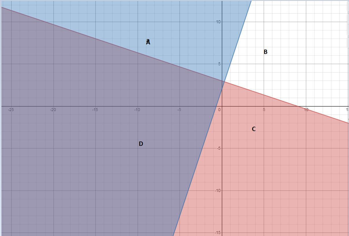 The graph of this will be a solid line passing through (-2/3,0) and (0,2) with away from the origin.