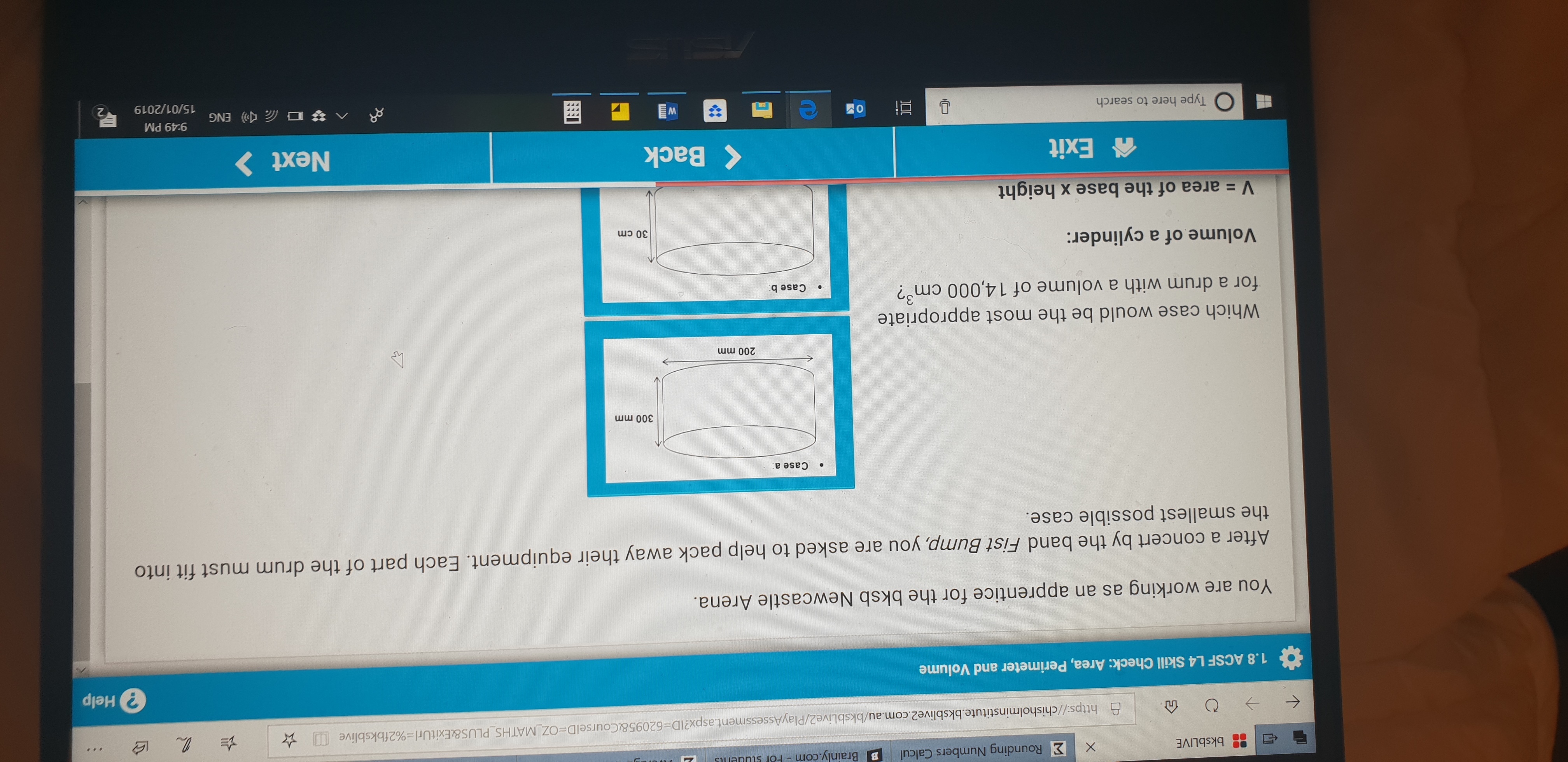 Question 1: We are required to fit a drum having volume 14,000 cm³.