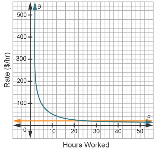 In the graph, the x axis represents the number of hours worked and the y-axis represents the hourly rate.