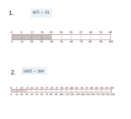 1. Find 40% of 60 using two different strategies, one of which must include a pictorial model or diagram.