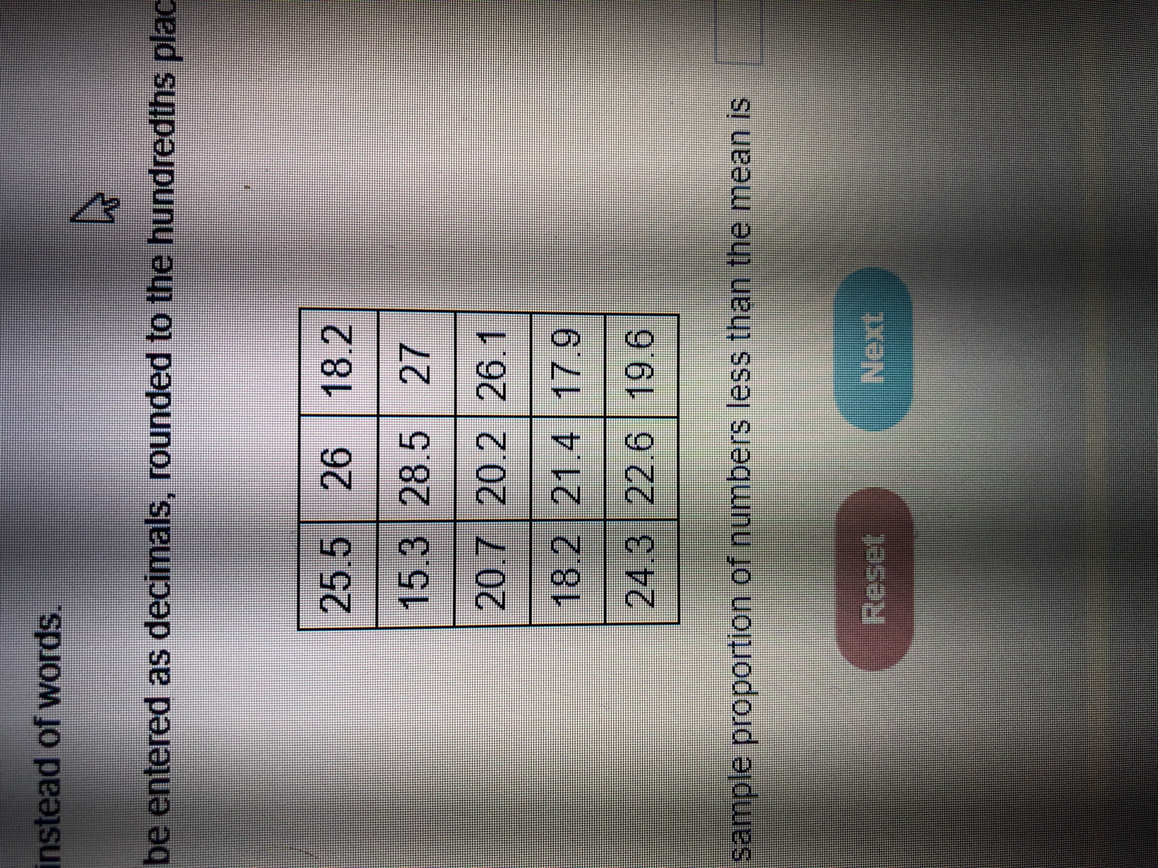 The sample proportion of numbers less than the mean is = (7/15 ) *100 =46.67%