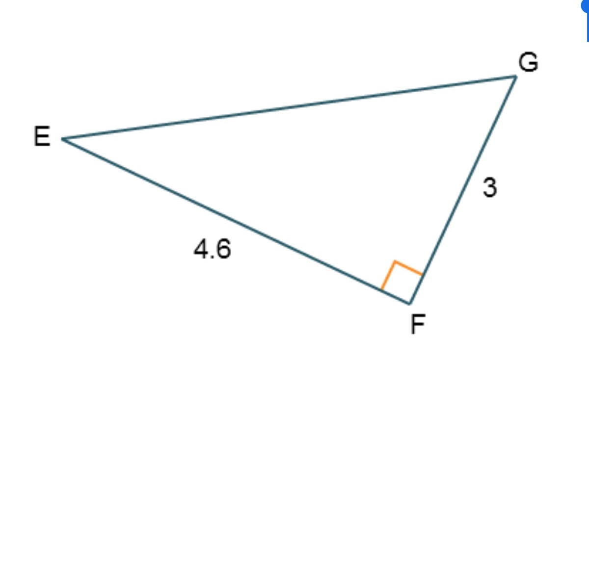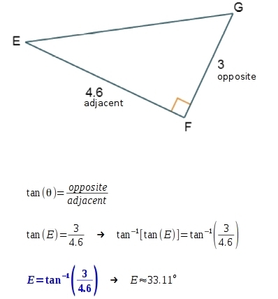 Which equation could be used to find m∠E in △EFG? m∠E = cos–1 m∠E = cos–1 m∠E = tan–1 m∠E = tan–1