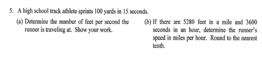 If there are 5280 feet in a mile and 3600 seconds in an hour, determine the runners speed in miles per hour. Round to the neares