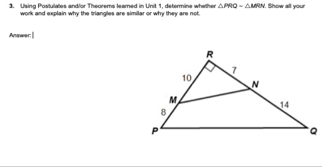 Here, PRQ and MRN are two triangles Shown in the diagram,