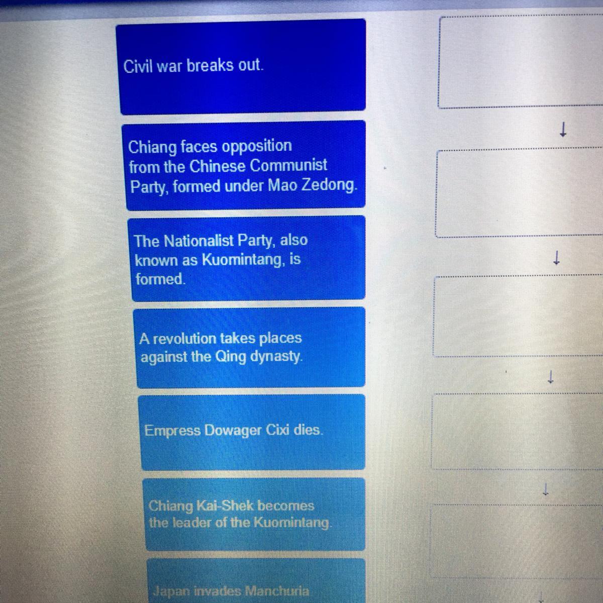 G-Japan invades Manchuria A-civil war breaks out