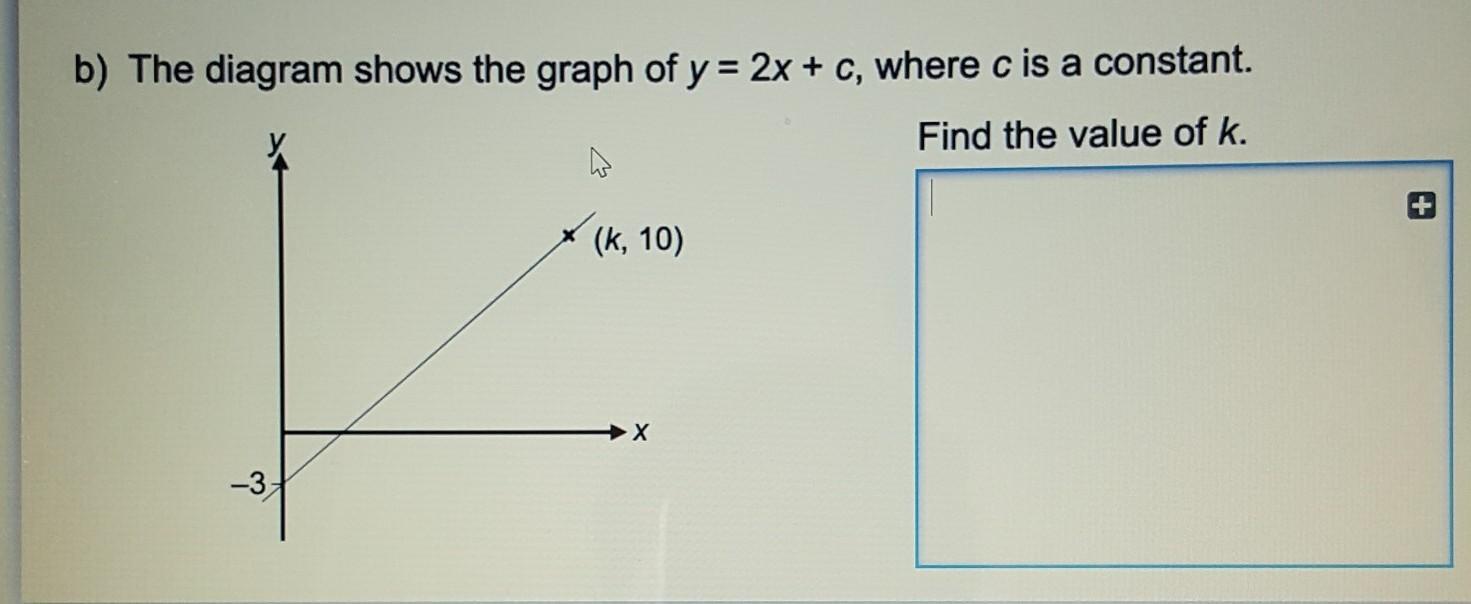 The diagram shows the graph of y = 2x + c, where c is a constant find the value of K.​