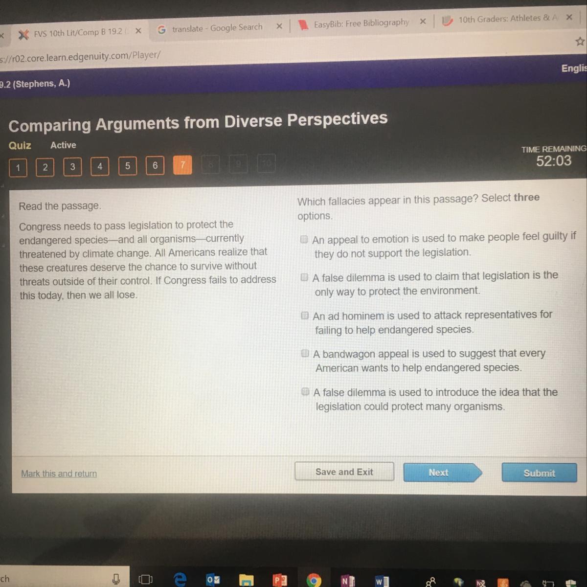 "If Congress fails to address this today, then we all lose", this is partially a false dilemma and partially a bandwagon. Not passing the legislation does not necessarily mean that the creatures will be in danger. And also, there are other ways to approach the situation in the private sector.