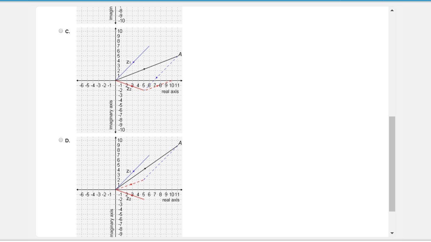 - We can add and subtract them by adding or subtracting the real parts