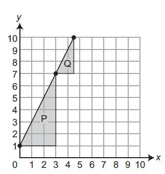 e figure. To check her work, she repeats the process and makes a right triangle Q as shown. Which statement explains why the slope of the line should be the same when calculated with either triangle?
