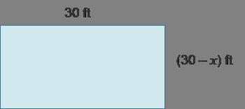 The diagram below represents the measurements of Jennie’s yard. The yard’s width is x feet shorter than its length. If the area