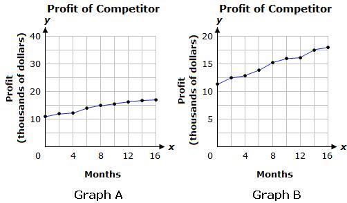 The graphs below show the profit, y, of the competitor over the past 16 months. Both graphs show the same information.