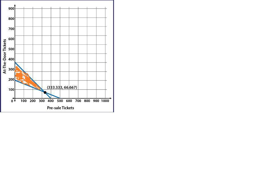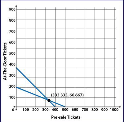 Let x be number of pre-sale tickets and y be the number of at-the-door tickets as your graph suggests.
