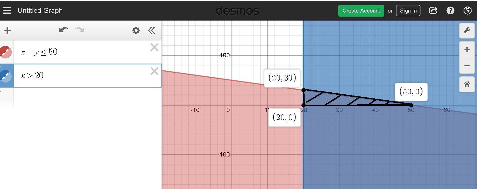 So, join the points (0, 50) and (50, 0) in the coordinate plan,