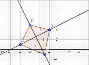 The slope of AB  is \frac{4-1}{-2--8} =\frac{3}{6}=\frac{1}{2}
