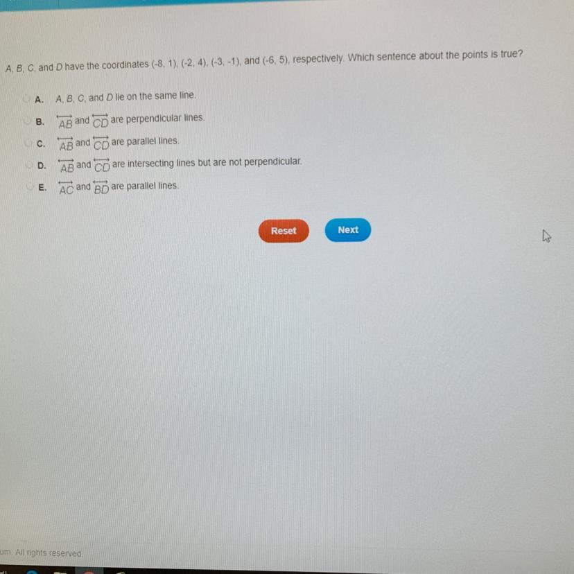 A visual representation will help us see that A,B,C, and D do not lie on the same line.