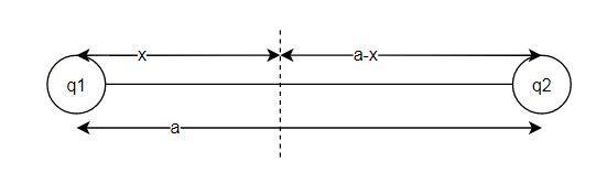 \frac{kq1}{a^2}=\frac{kq2}{(a-x)^2}