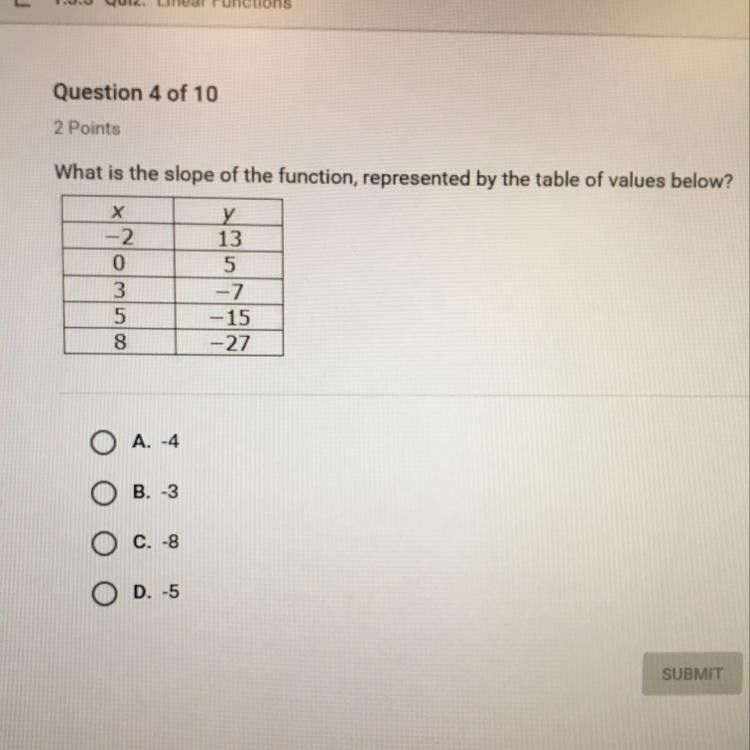 Thus the slope is -4