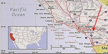 It is about 130 km east of Long Beach and 130 km north of San Diego.