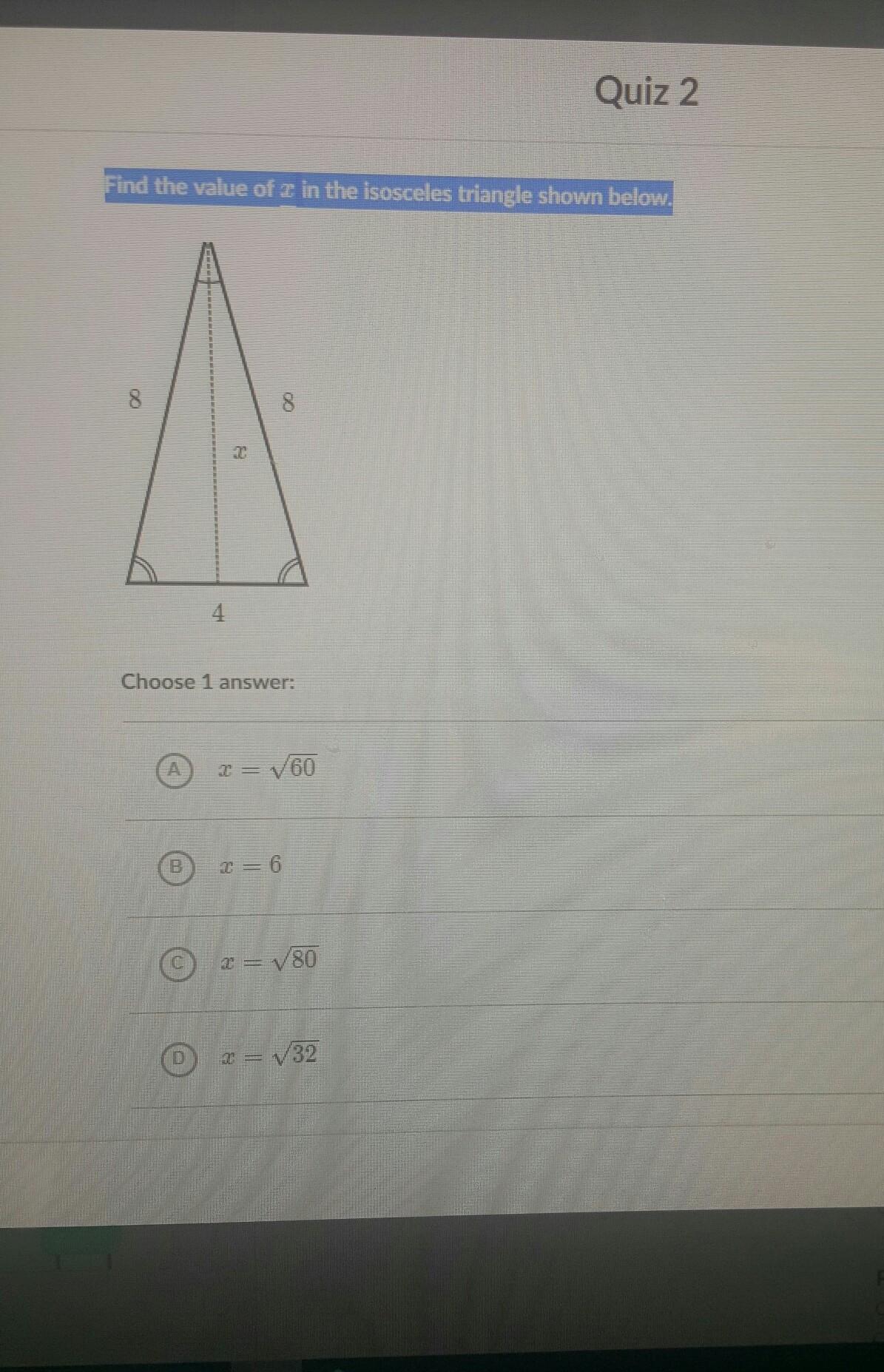 Opposite angles formed by two intersecting lines are equal, so angle 1 is the same as angle 4. That means angle 1 = angle 5 as well.