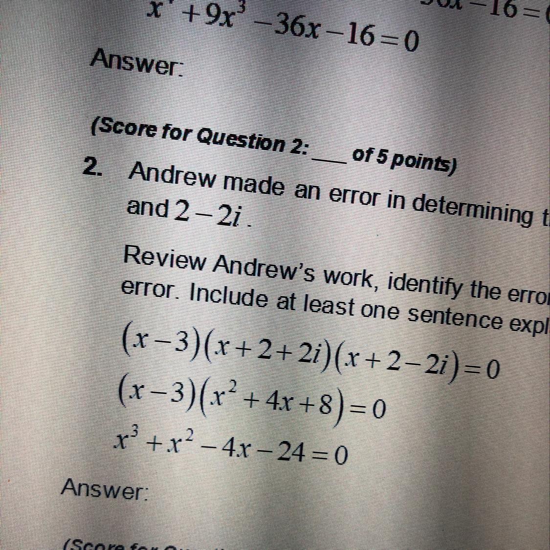 This is the step where Andrew made the error. The factors will always be of the form (x - a) , not (x + a). Andrew wrote the complex factors in form of (x + a) which resulted in the wrong answer.