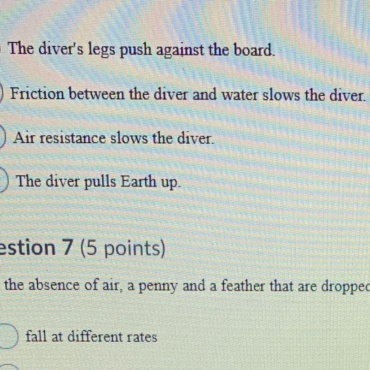 On the diver, this upward thrusting force will be acting as the reaction force to the gravitational action force.