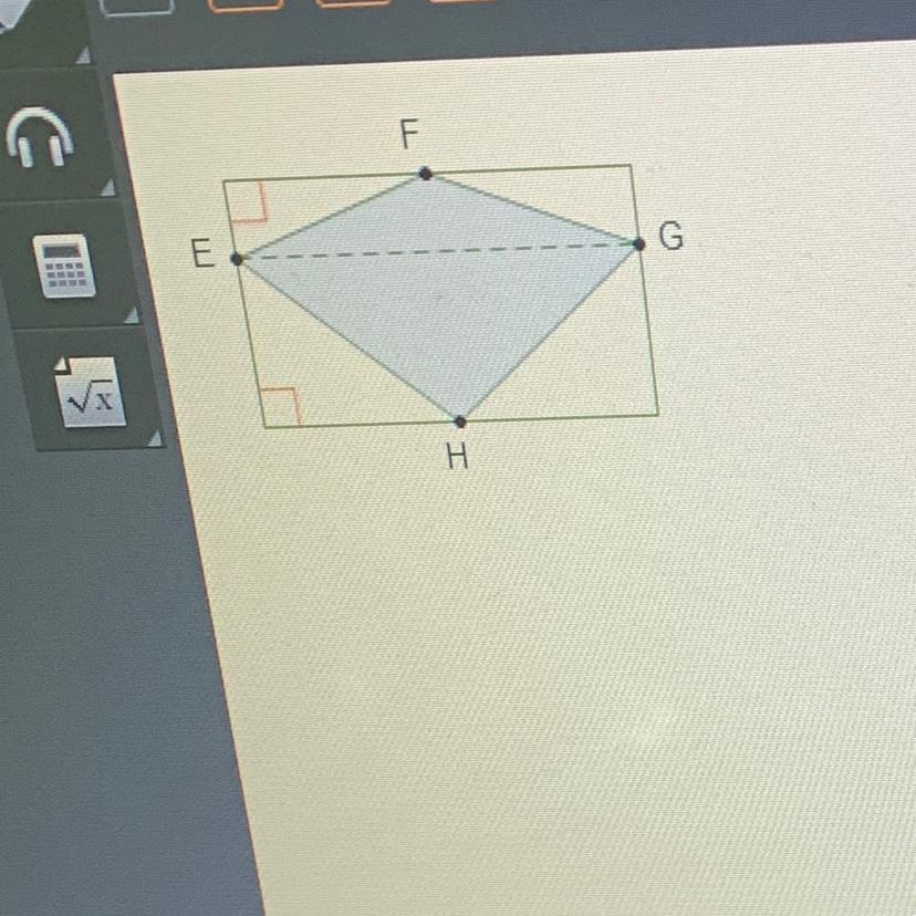 Kite EFGH is inscribed in a rectangle such that F and H are midpoints and EG is parallel to the side of the rectangle.