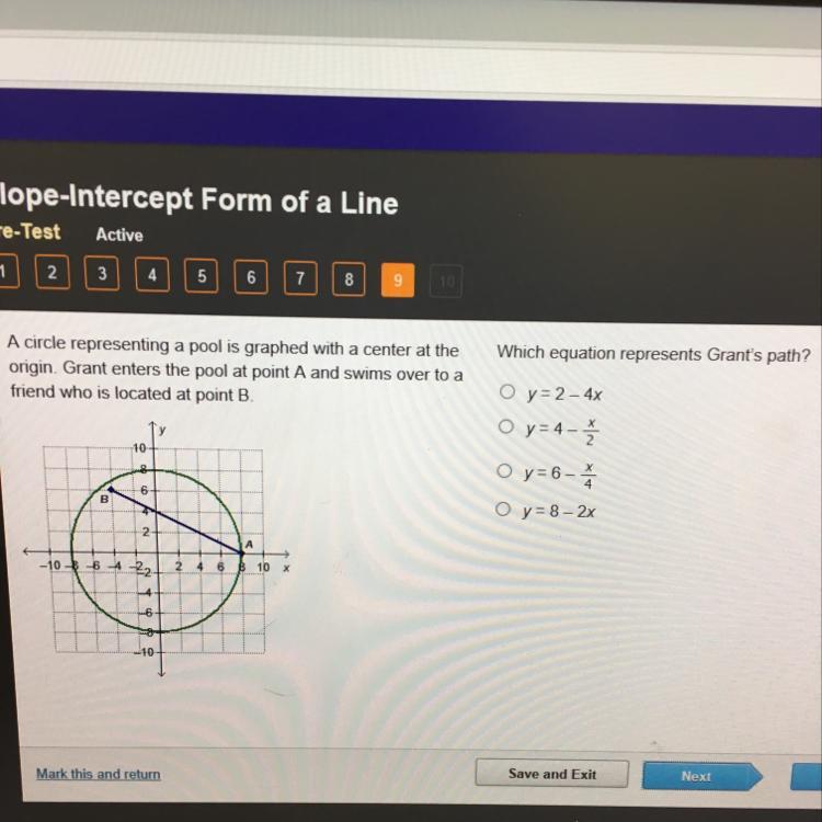 Hence, the correct option is B) y=4-\frac{x}{2}
