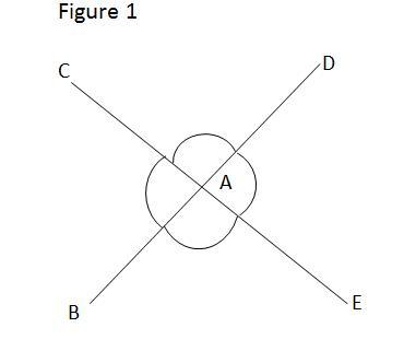 2 lines intersect at point A. One line contains points C, A, E and the other line contains points B, A, D. Which are linear pair