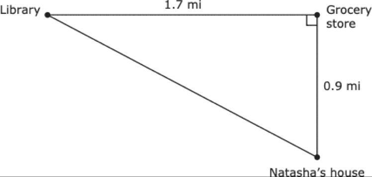 Natasha walked from the library to the grocery store then to her house. The diagram shows the top of the locations of these thre