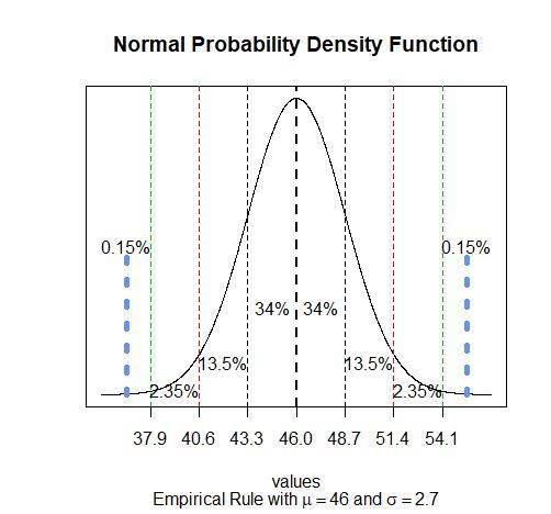 Below we can observe the empirical rule with a mean of 46.0 inches and a standard deviation of 2.7 inches. We have that 48.7 inches represents one standard deviation above the mean, so, we can consider that Aaliyah's height is the 84th percentile. On the other side, Jayne's height is the 93rd percentile of the height distribution. Therefore, the relationship that there exists between Aaliyah's height and between Jayne's height is that Aaliyah's height is less than Jayne's height.