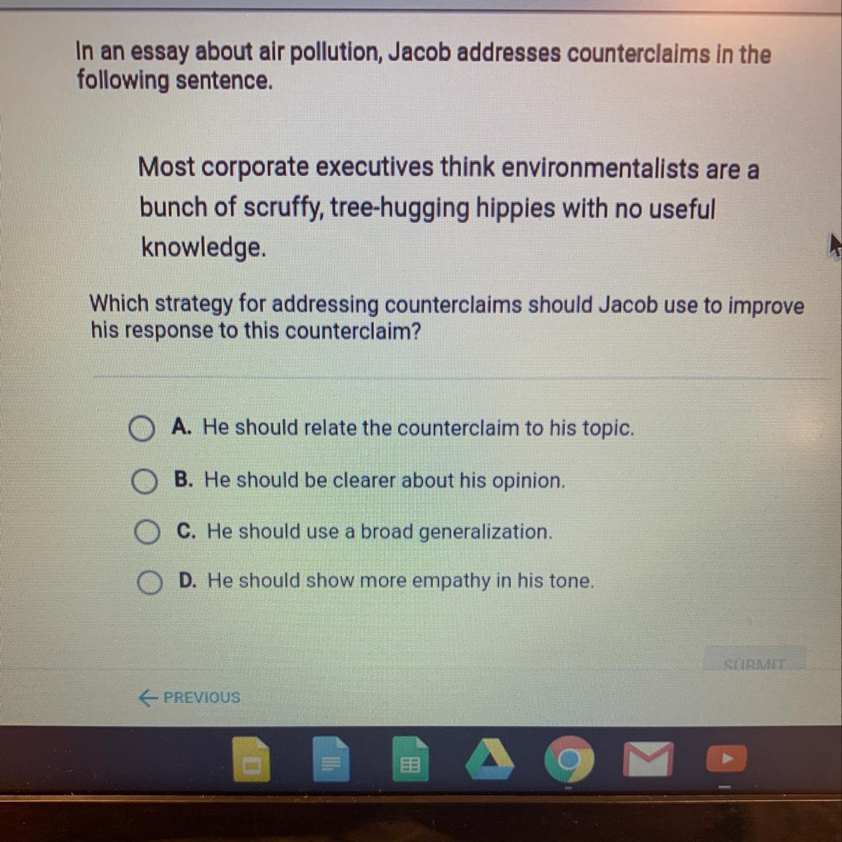 The answer is d it was difficult but i figured it out after i took a test hope it helps u