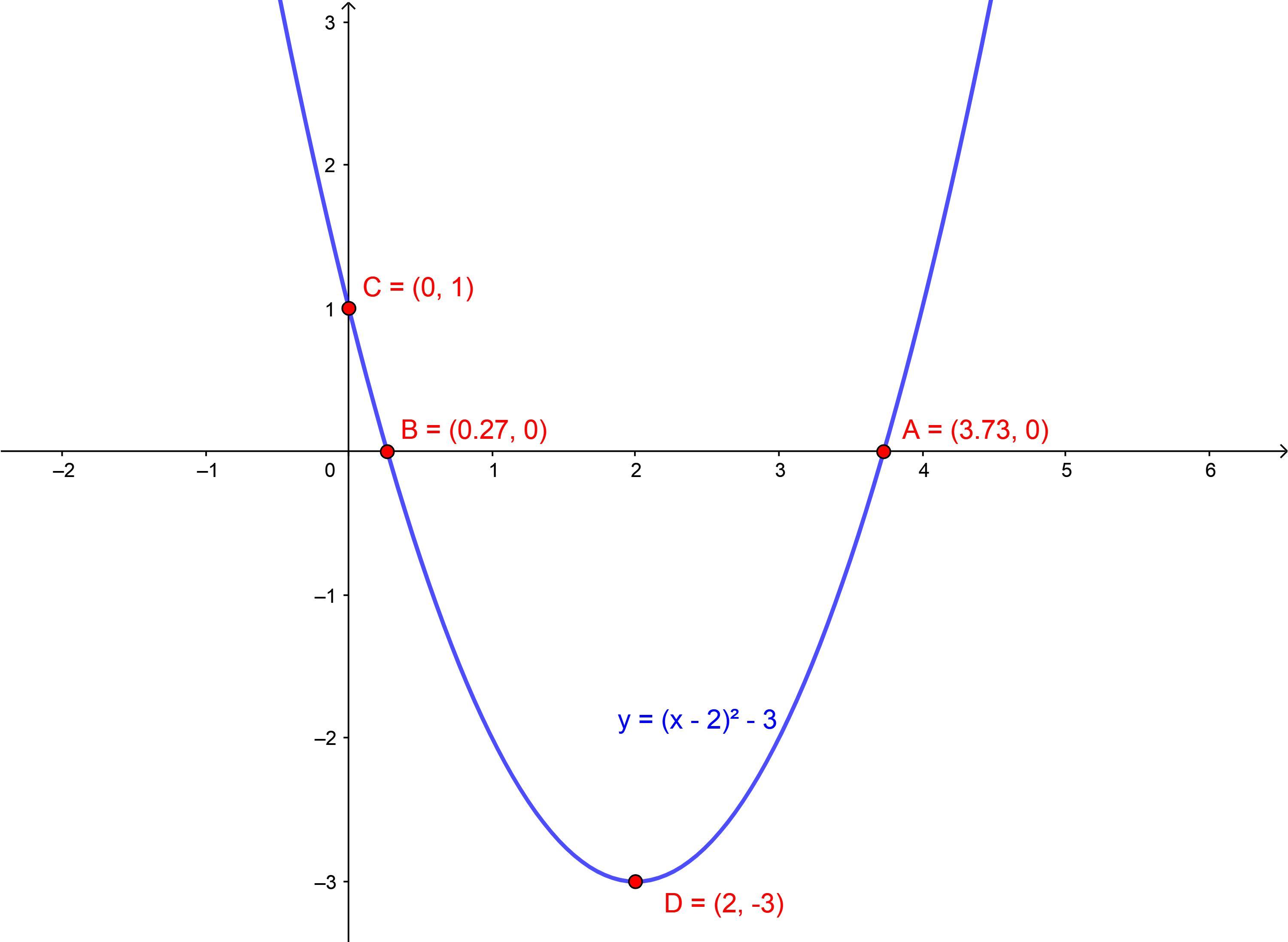<h2>y = ( x - 2 )² - 3</h2>