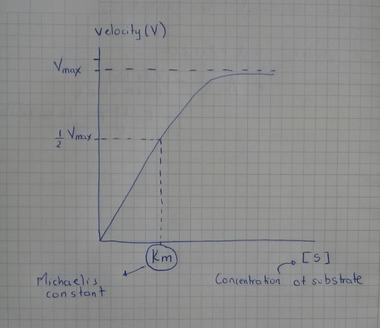 This image explains that when you have a constant concentration of enzyme and you add more substrate, the velocity will rise but, when the reaction reaches the maxim velocity (Vmax), this value will be constant, and it is because all the enzyme active site are full with substrate already, so even if you add, the reaction will not accelerate.