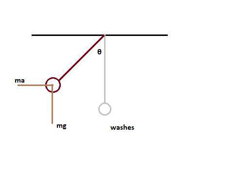 I attached a diagram, according to the description given, to better understand the problem. The car accelerates, at a 'a' speed, which will also experience the hanging object, in two components: