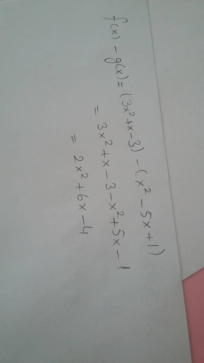 Let f(x) = 3x2 x − 3 and g(x) = x2 − 5x 1. find f(x) − g(x). select one: