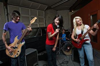 Explanation: the pictures shows the singers in a garage, and the correct way to say the is el in this situation.