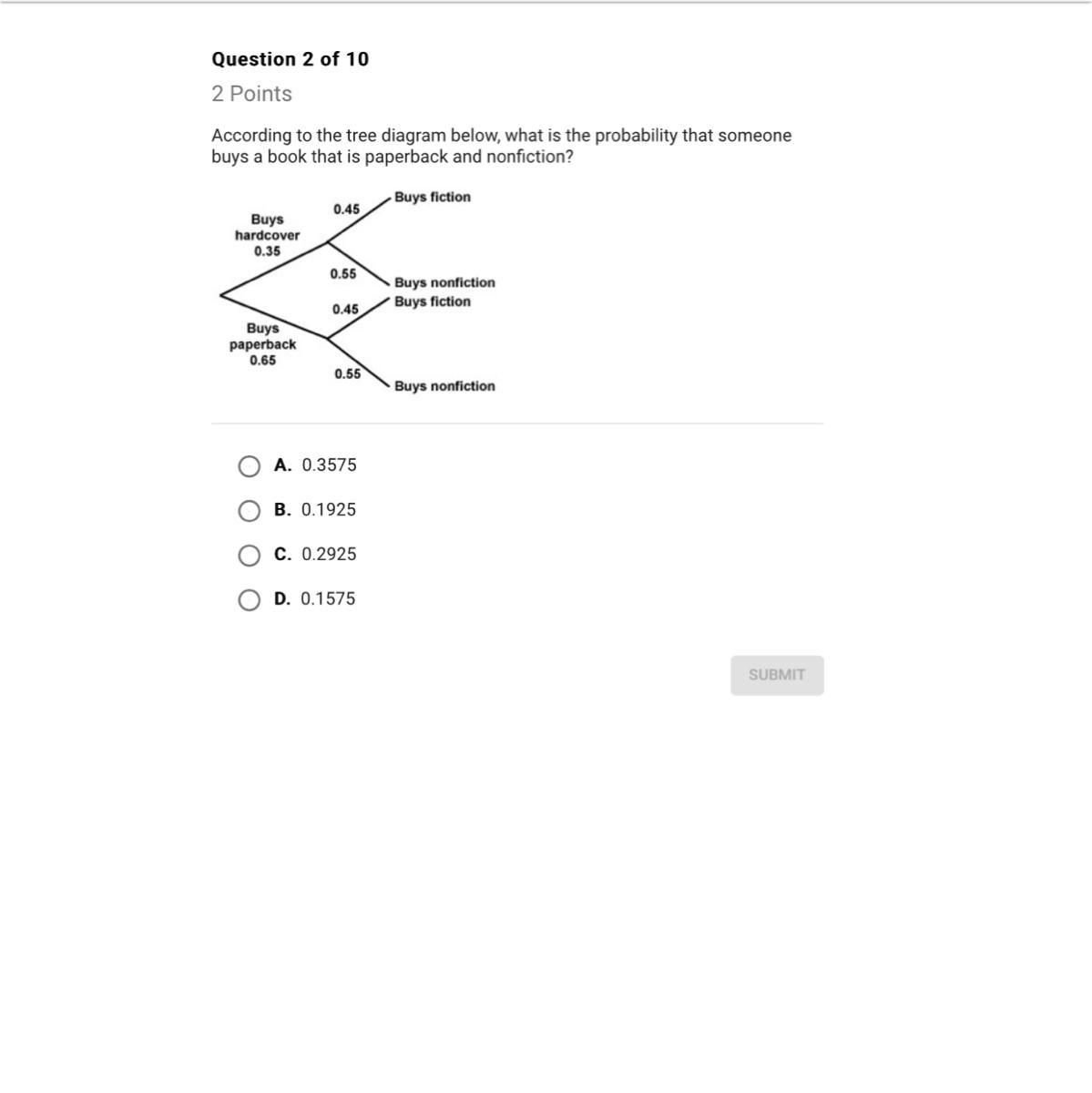 According to the tree diagram below, what is the probability that someone buys a book that is paperback and nonfiction?