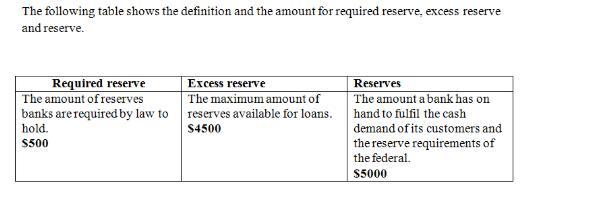 otal $5000. Using this information and your knowledge of the banking system, place both the definition and dollar amounts below in their appropriate category. Assume a required reserve ratio of 10%. Not all items will be placed.